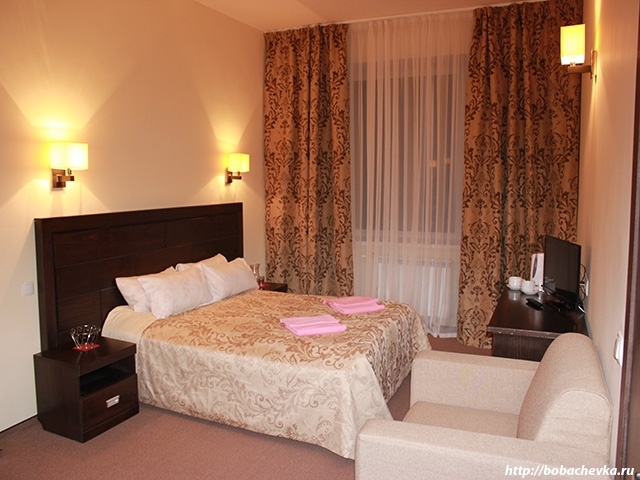 В номере: плазменный телевизор, холодильник, чайник, набор чай/кофе, Wi - Fi бесплатный, ковролин, двухспальная кровать, дополнительное место (кресло), диван.