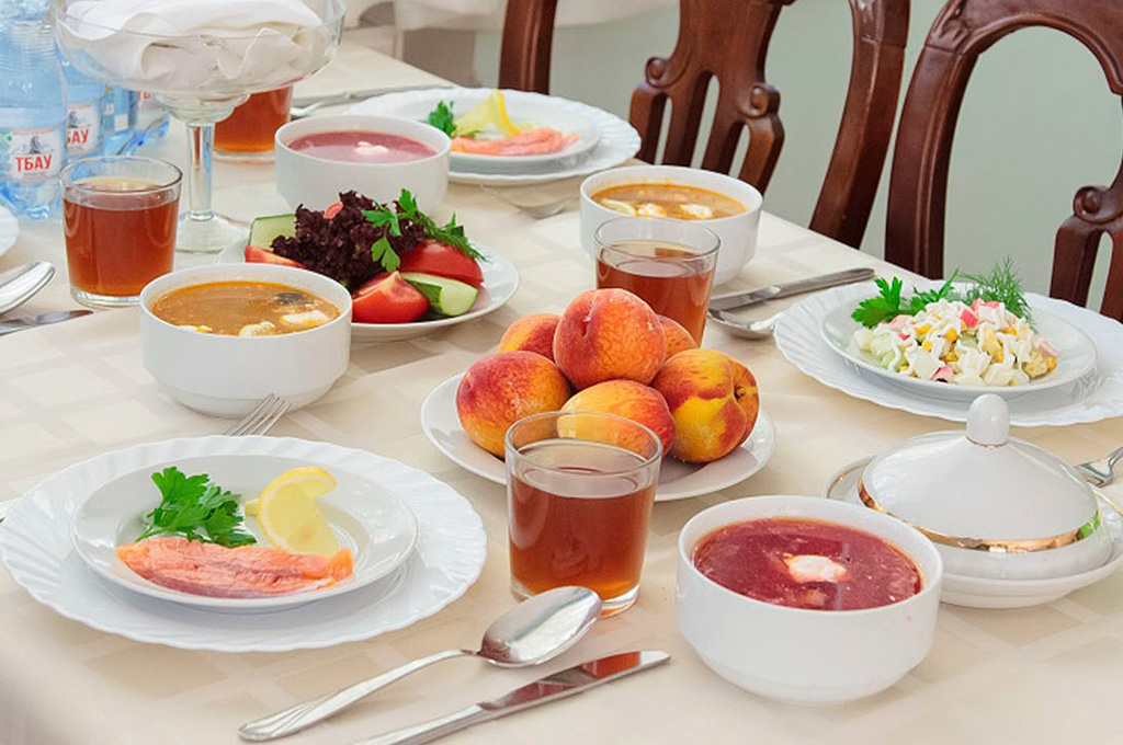 В гостинице "Чайка" особенно уделяется внимание вопросам питания отдыхающих, поскольку оно является одним из важных элементов лечебно-терапевтического процесса. Шеф-повара приготовят для гостей полезные и по-домашнему вкусные блюда, сбалансированные по калорийности и энергетической ценности. На столах постояльцев каши, супы, гарниры, мясо и рыба, закуски, салаты, выпечка, напитки, свежие овощи и фрукты. Все блюда приготовлены из натуральных и качественных продуктов, без применения усилителей вкуса, трансжиров и консервантов. В здравнице действует трехразовое питание по системе "заказное меню", это значит, что каждый отдыхающий самостоятельно формирует свое меню на следующий день, выбирая для себя подходящие и любимые блюда. В день заезда осуществляется комплексное питание. Кроме столовой на территории санатория работает уютное кафе, где Вы сможете провести романтическую или деловую встречу или просто перекусить и провести и приятно за любимыми напитками, десертами или закусками.
