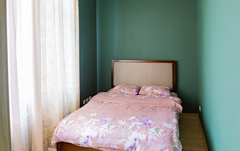 В номере: кровать двуспальная, кухонная мебель, стол, стулья, шкаф, кондиционер, микроволновая печь, набор посуды, телевизор, холодильник, электрочайник