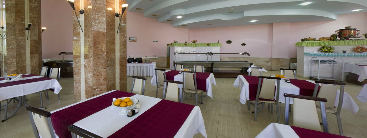 В залах питания предлагается широкий ассортимент холодных закусок, кулинарных и кондитерских изделий, горячих и холодных напитков, фруктов. Учитывая профиль санатория, предусмотрено индивидуальное питание при различных заболеваниях желудочно-кишечного тракта, аллергических состояниях, нарушениях обмена веществ.
