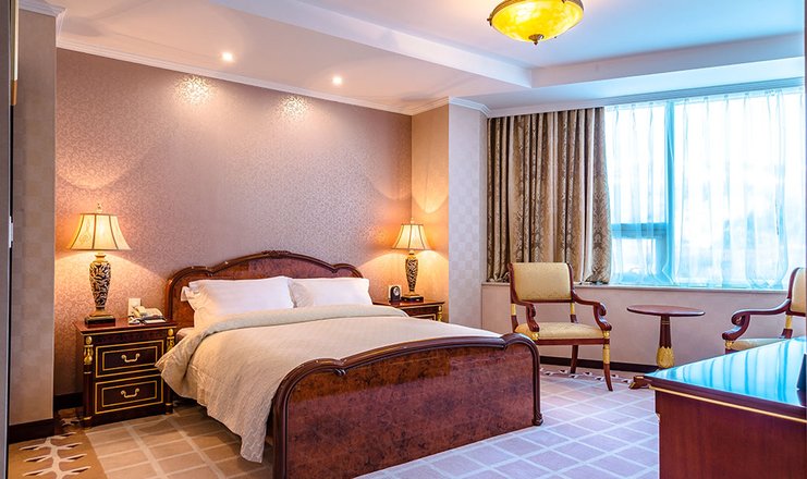 В номере: вешалка, зеркало, кровать двуспальная, набор мягкой мебели, прикроватные тумбочки, стол, стулья, шкаф, Мини-кухня, мини-холодильник, сейф, сплит-система, телевизор, телефон, электрочайник