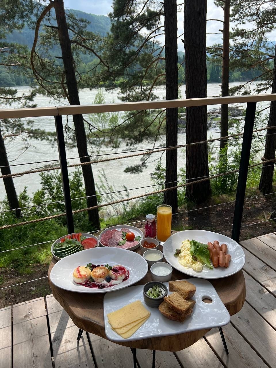 Ресторан "Сосны" находится в туристическом комплексе Grand Chalet Altay всего в нескольких шагах от эко-отеля "НАТУРА". Этот панорамный ресторан предлагает не просто еду, а настоящее гастрономическое путешествие, дополненное завораживающими видами Алтая. Гости отеля "НАТУРА" могут выбрать дополнительную услугу - заказать завтрак в формате "шведский стол". Каждое утро гостей ожидает обильный шведский стол с разнообразными горячими блюдами, ароматной выпечкой, десертами, воздушными сырниками с ягодами, свежими фруктами и ароматным кофе.