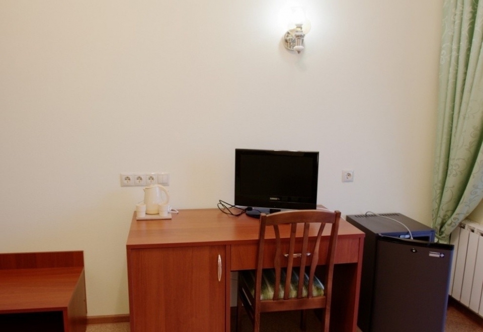 В номере: две односпальные кровати, стулья, кондиционер, телевизор, холодильник, электрочайник.