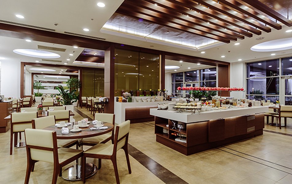 Для гостей, проживающих в отеле, ежедневно подают завтрак в формате «шведский стол». В меню представлены разнообразные блюда европейской, русской и мордовской кухни, удовлетворяющие самые разные вкусы.