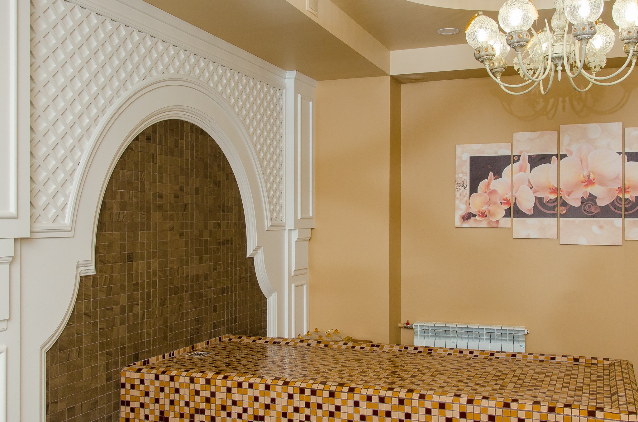 Хаммам внесет неоценимый вклад в здоровье своих гостей даже после однократного посещения. Пар, горячая вода обеспечивают высокую влажность и температуру воздуха в помещении. Необычные климатические условия заставляют организм перестраиваться и активизировать всю свою энергию для поддержания нормального тонуса.