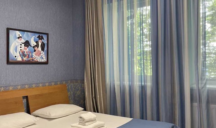 В номере: кровати односпальные /одна двуспальная кровать, прикроватные тумбочки, стол, стулья, шкаф, вентилятор, мини-холодильник, сейф, телевизор ЖК