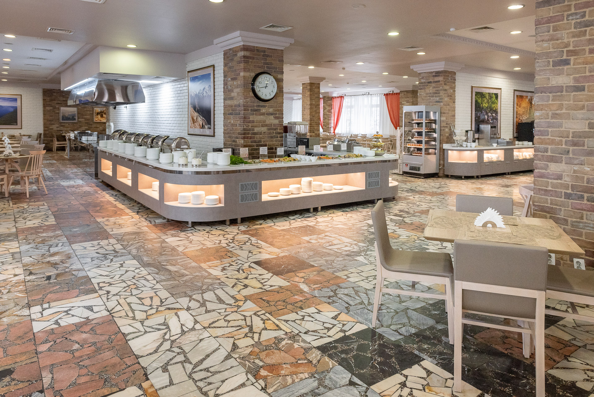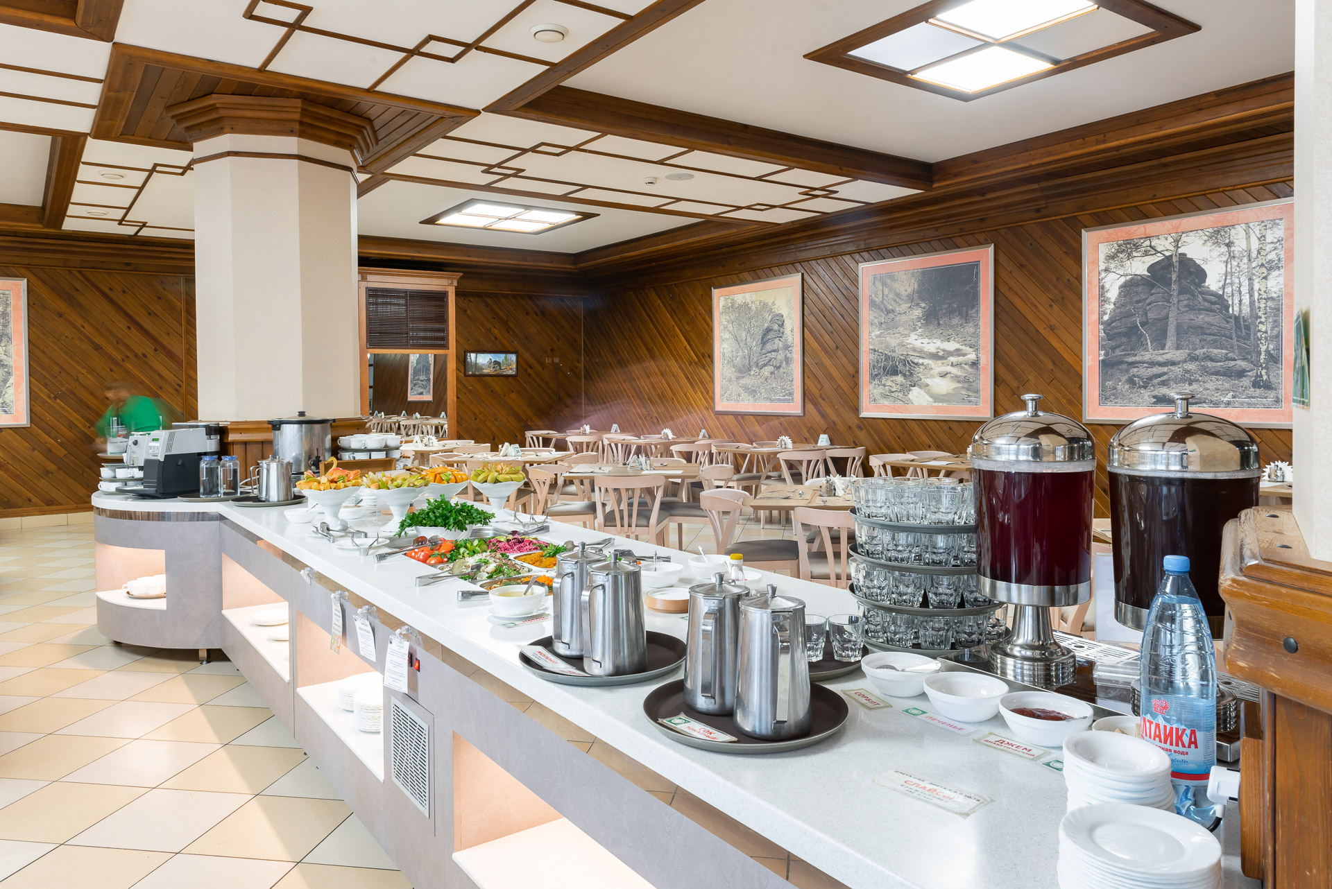 Гости санатория могут выбирать из нескольких ресторанов, расположенных в основном корпусе, эко-отеле "Эхо" и бизнес-отеле "Россия". Взрослым предлагается четырехразовое питание, а для детей предусмотрено шестиразовое меню.