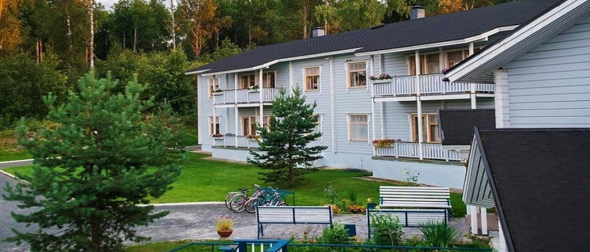 Отель, построенный в соответствии с финской технологией и используя экологически чистые деревянные конструкции, занимает площадь 1,5 Га на благоустроенной территории. Состоит он из двух корпусов, трех домиков A-frame и отдельной бани. Вам будет предоставлена возможность насладиться чистым воздухом, попробовать лечебную воду из Марциальных источников и посетить множество природных достопримечательностей.