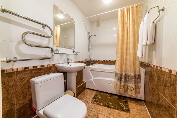 В номере: две или три односпальные кровати, прикроватные тумбы, шкаф, журнальный столик, телевизор, холодильник, чайный набор посуды, электрочайник
