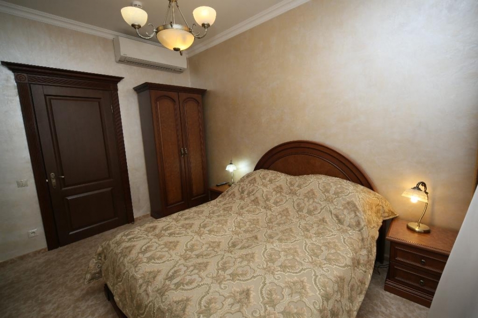Санузел: душевая кабина, умывальник, унитаз. Санузел спальни: джакузи, умывальник, унитаз. Фен, полотенца, халаты.
