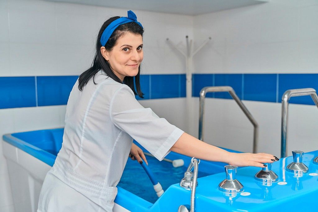 - Водолечение — ванны (йодо-бромные, бишофитные, жемчужные, сухие углекислые ванны и другие водные процедуры)