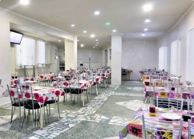 В столовой санатория для отдыхающих предложено разнообразное 4-х разовое питание ,соответствующее безопасности и экологичности. Меню имеет 4 вида диет (общий стол - в меню которого обязательно входят мясные, рыбные блюда, колбасные, крупяные и молочные изделия, 9 стол - это меню рассчитанное для людей болеющих сахарным диабетом, рацион блюд подбирает непосредственно лечащий врач и диет сестра, и стол №5 –это отдыхающие с заболеваниями желудочно –кишечного тракта, печени, желчевыводящих путей.)