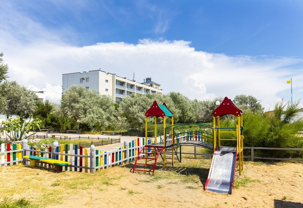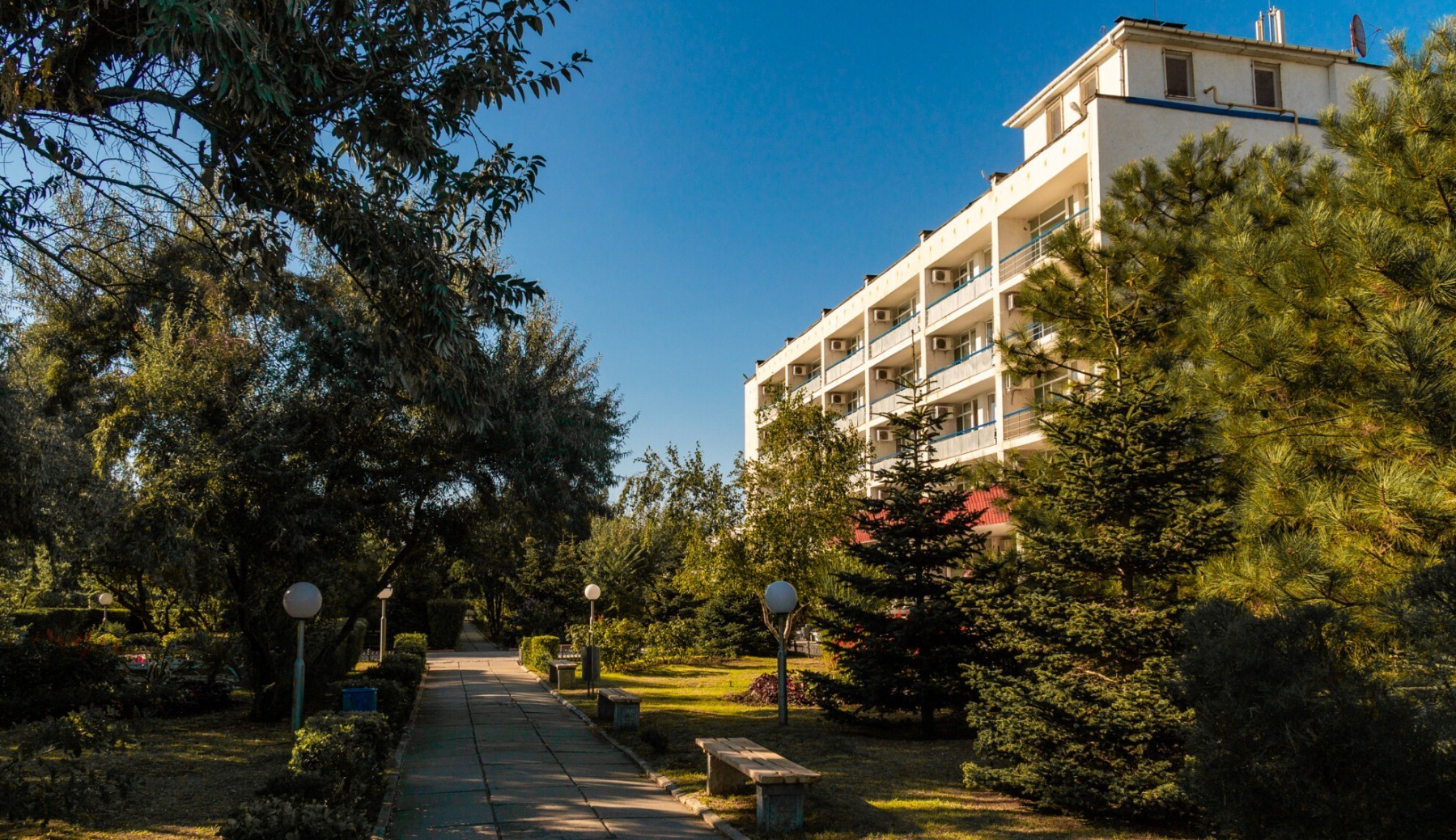 Территория санатория "Северное сияние" расположилась в курортном пригороде города Саки – между соленым Сакским озером и побережьем Черного моря.