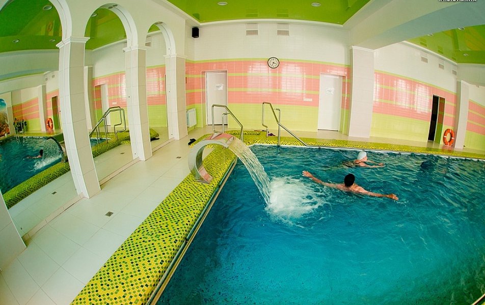 - Бассейны: крытый (пресная вода, работает круглогодично)