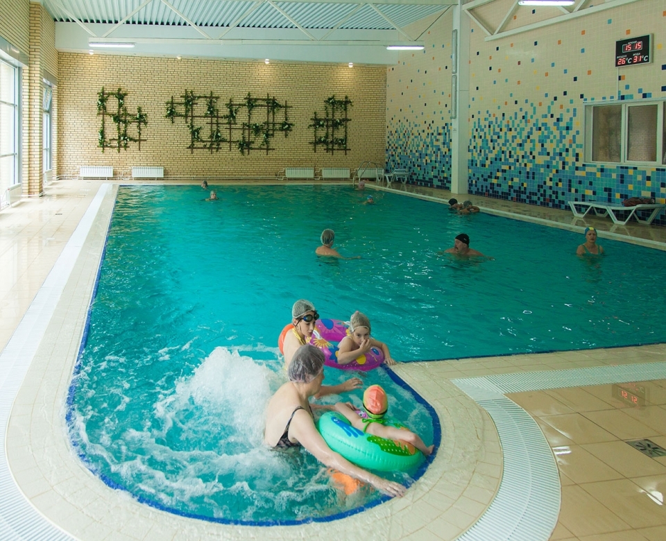 Спорт: бассейн с зоной джакузи, аквааэробика, поле для мини-футбола, волейбольная площадка, настольный теннис, прокат спортинвентаря (велосипеды, лыжи, коньки, бадминтон, ракетки и мячи для настольного тенниса).