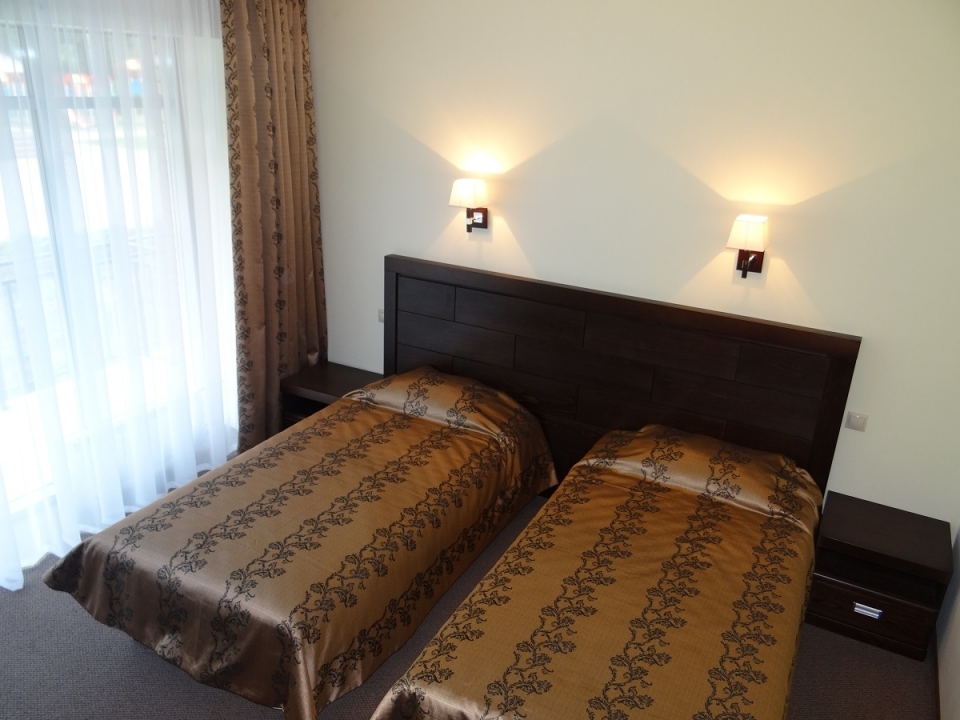 - В номере: душ, туалет, ТВ, холодильник, телефон, гостиная, двуспальная или две раздельные кровати.