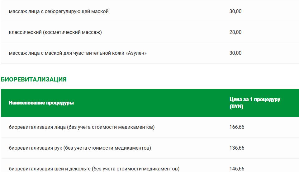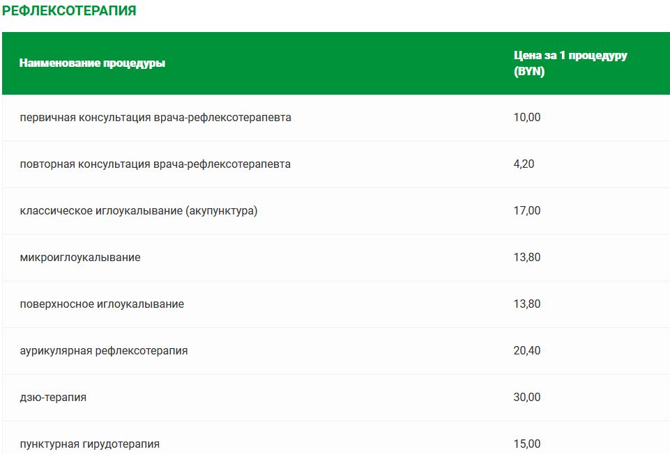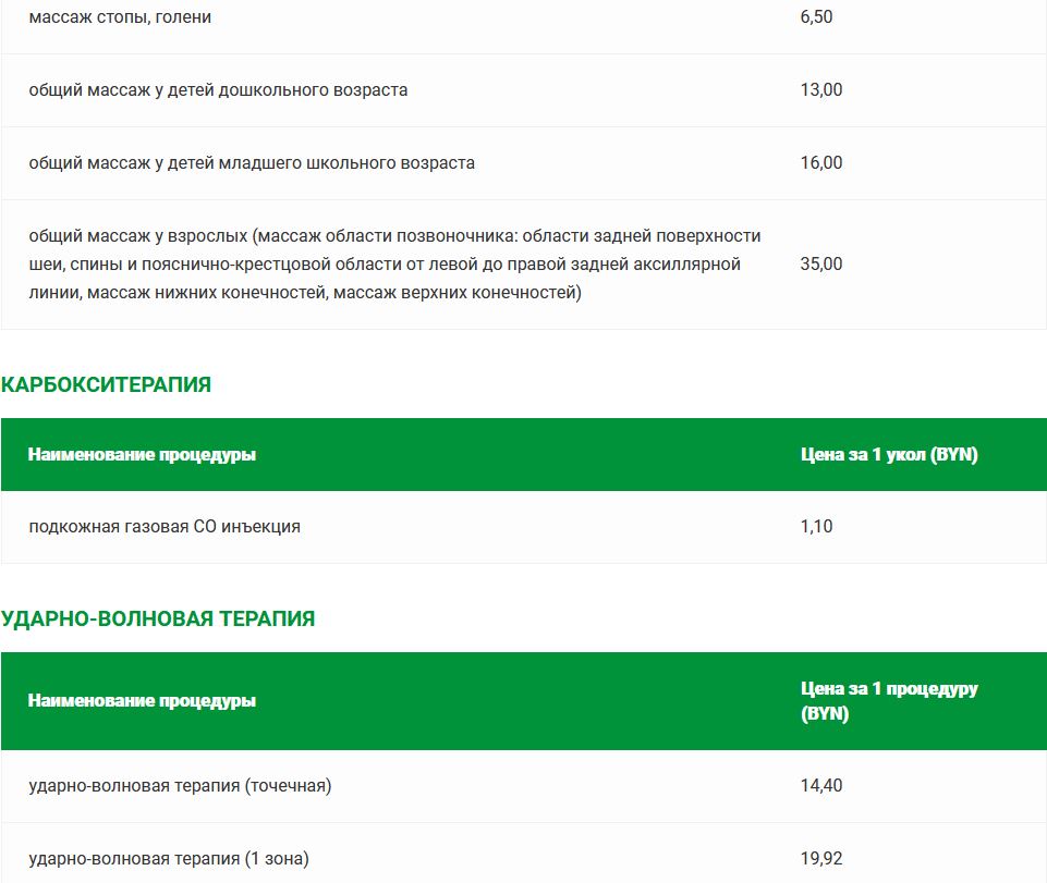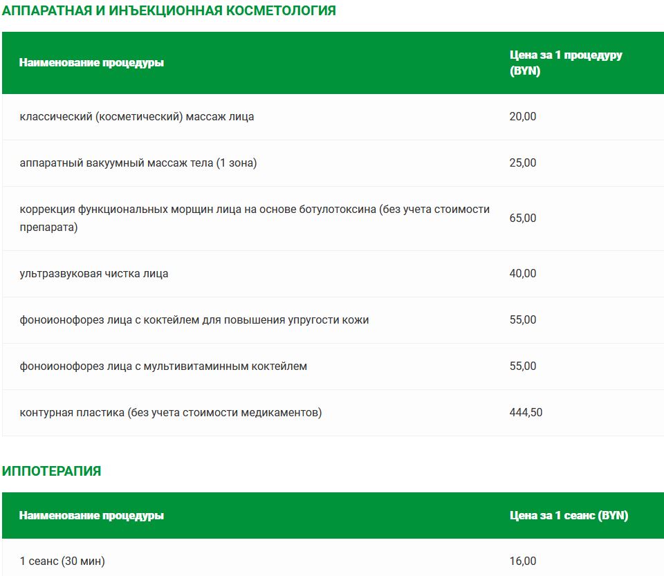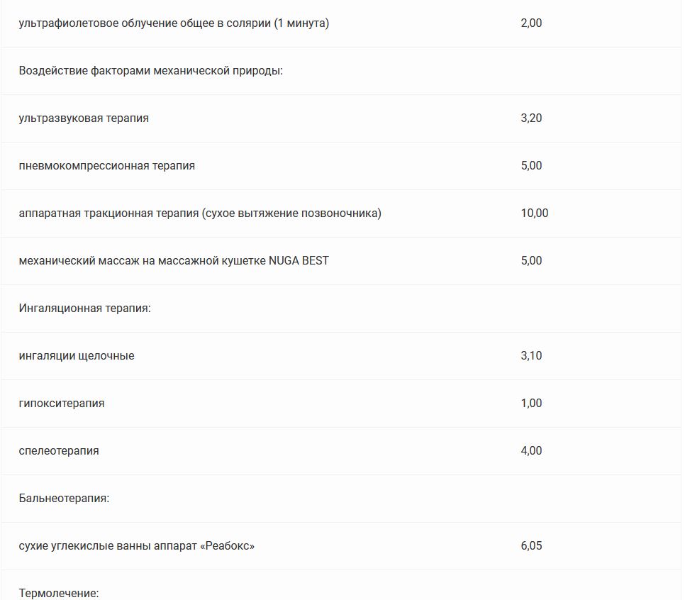 Прейскурант цен на платные медицинские услуги в санатории «Солнечный»