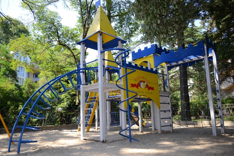 - Открытый бассейн для детей 1-18 лет (Глубина воды 0,3 м, температура воды 26° С) с детскими горками и водными аттракционами.