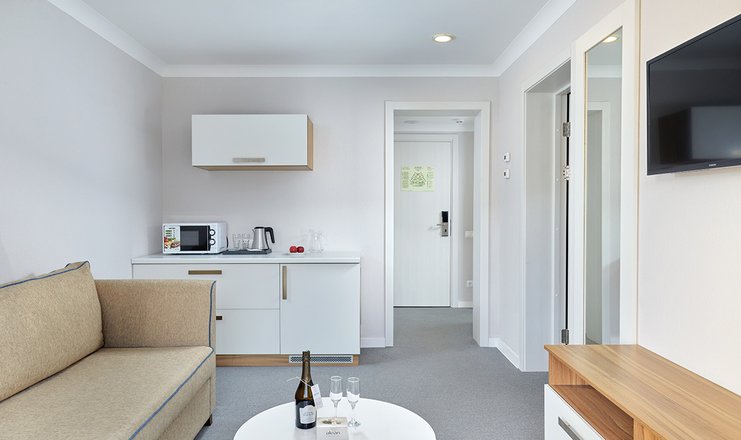 - Для удобства маленьких гостей имеется: микроволновая печь, стерилизатор бутылочек, подогреватель для бутылочек, блендер, детские стульчики.