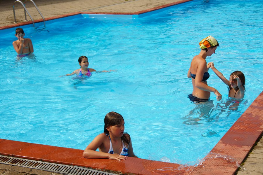 Летний бассейн открыт для всей семьи, предоставляя возможность отдохнуть под открытым небом и насладиться полным расслаблением и релаксацией.