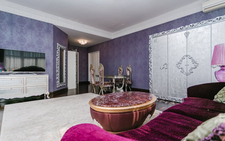 В номере: диван, комод, набор мягкой мебели, прикроватные тумбочки, стол, стулья, шкаф для посуды, кондиционер, телевизор, холодильник, электрочайник